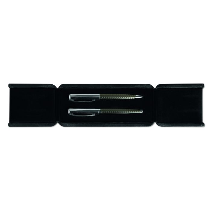 Set de scris în cutie cadou. Pix din alamă, cu deschidere prin răsucire și roller. Mină albastră.