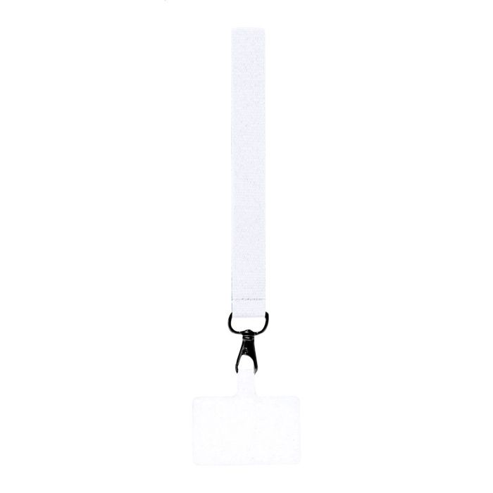 Curea de mână cu suport telefon mobil, din poliester, cu inserție pentru telefon și carabină metalică.