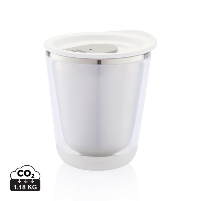 Closable, insulated and compact enough to fit under the coffee machine (227 ml). It is also very hygienic due to the lining of the mug being made out of stainless steel and not plastic. Designed so that the mug is easy to take apart for recycling. Registered design®