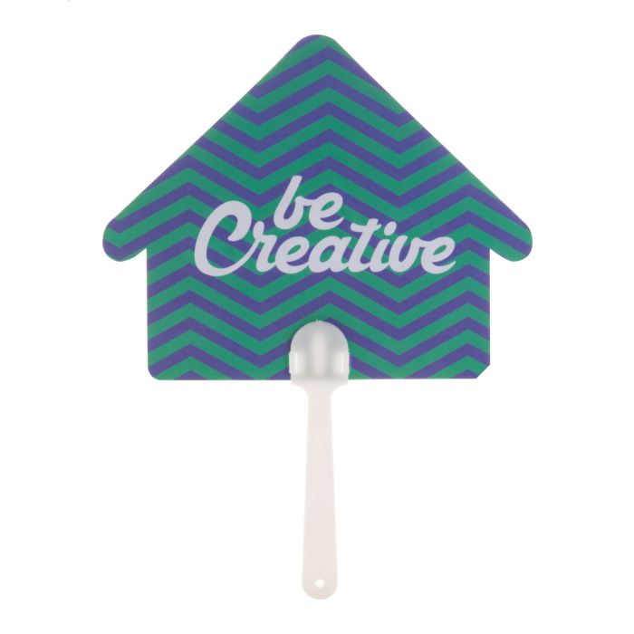 Evantai cu design unic, din hârtie laminată, mâner din plastic. Imprimare digitală pe ambele feţe. Cantitate minimă de comandă: 100 buc.