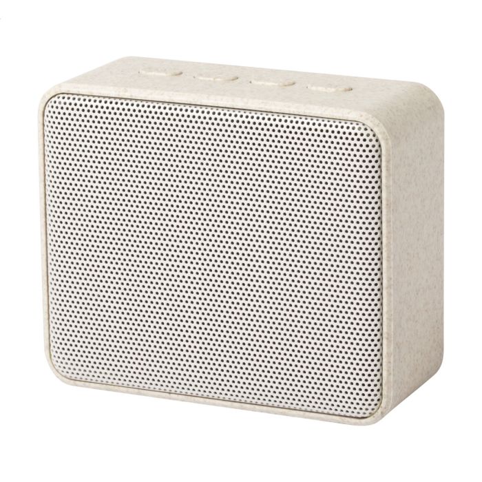 Boxă bluetooth din plastic ecologic din fibre de paie de grâu, cu baterie reîncărcabilă încorporată. Cititor card micro SD și USB. Se livrează cu cablu de încărcare USB.