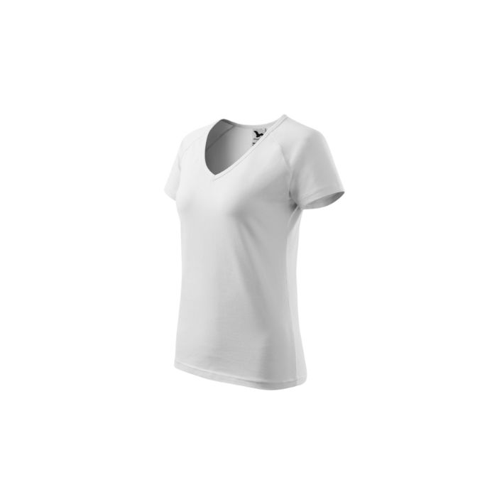 materialul elastic conferă stabilitate formei, croială "slim fit" ce prezintă cusături laterale, guler în formă de V, gulerul este finisat din acelaşi material precum cel de bază, mâneci scurte de tip raglan