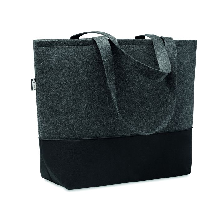 Geantă de cumpărături din pâslă RPET cu mânere lungi și bază colorată.