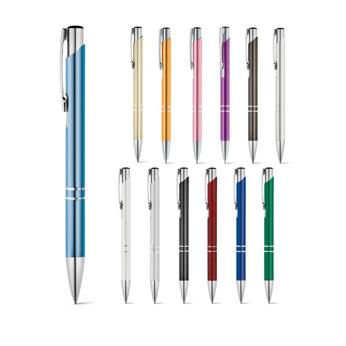 Aluminium ball pen with clip and metallic finish. Blue ink