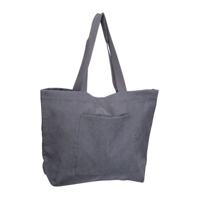 Sturdy shopper made of durable playester cord fabric, 250gsm corduroy (100%) with a front pocket, snap closure, and long, comfortable carrying handles.