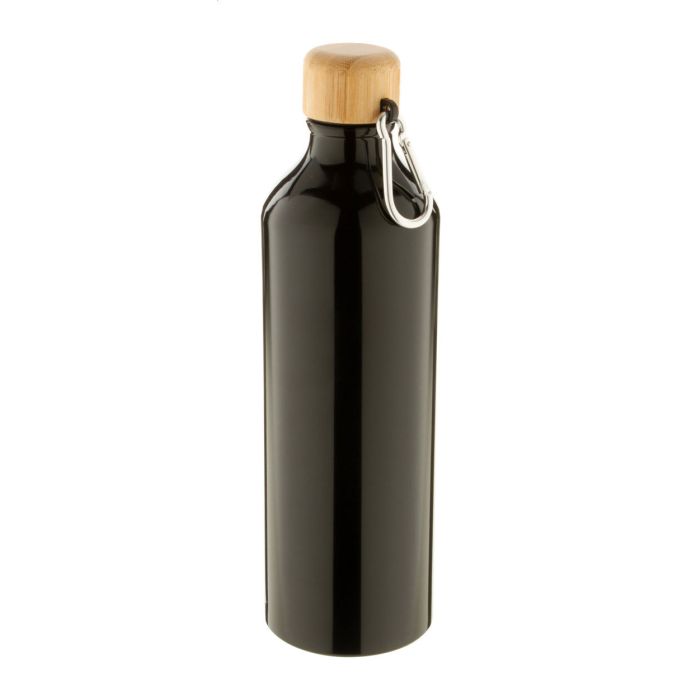 Aluminium bottle with bamboo lid and carabiner, 800 ml.