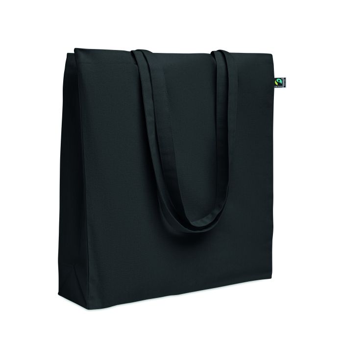 Shopping bag with long handles and gusset made of Fairtrade cotton. 180 gr/m².