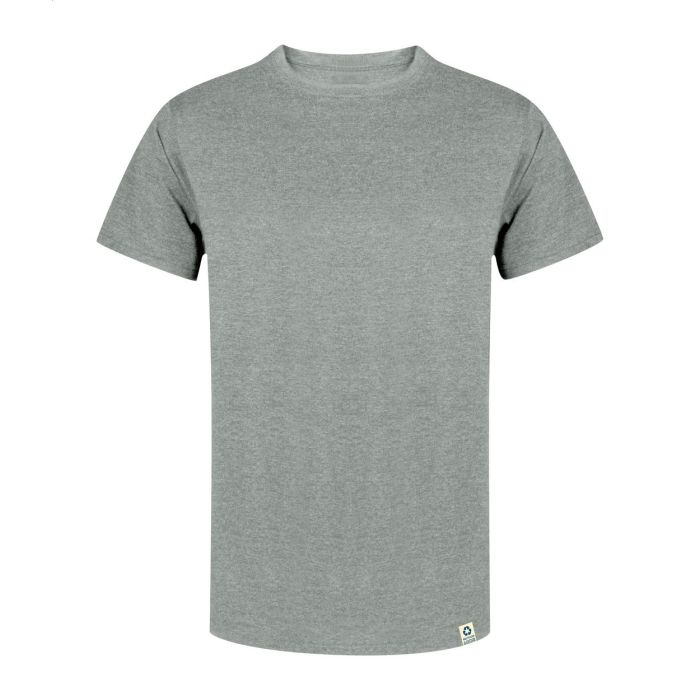 Round neck T-shirt in 60% recycled cotton and 40% RPET polyester single jersey fabric, 150 g/m2.