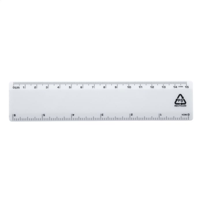 Recycled PS plastic ruler, 15 cm.