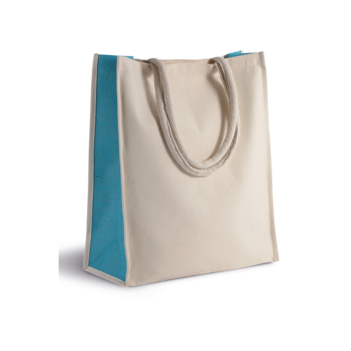Cotton canvas tote bag with contrasting side panels in jute canvas