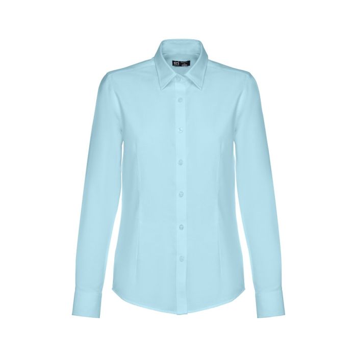 Long-sleeved oxford shirt for women in 70% cotton and 30% polyester (130 g/m²). Contains adjustable cuffs with 2 buttons and sleeve with 1 pleat. Fitted shirt with 2 darts on the front and back, and placket with 7 pearl coloured buttons. Sizes: S, M, L, XL, XXL