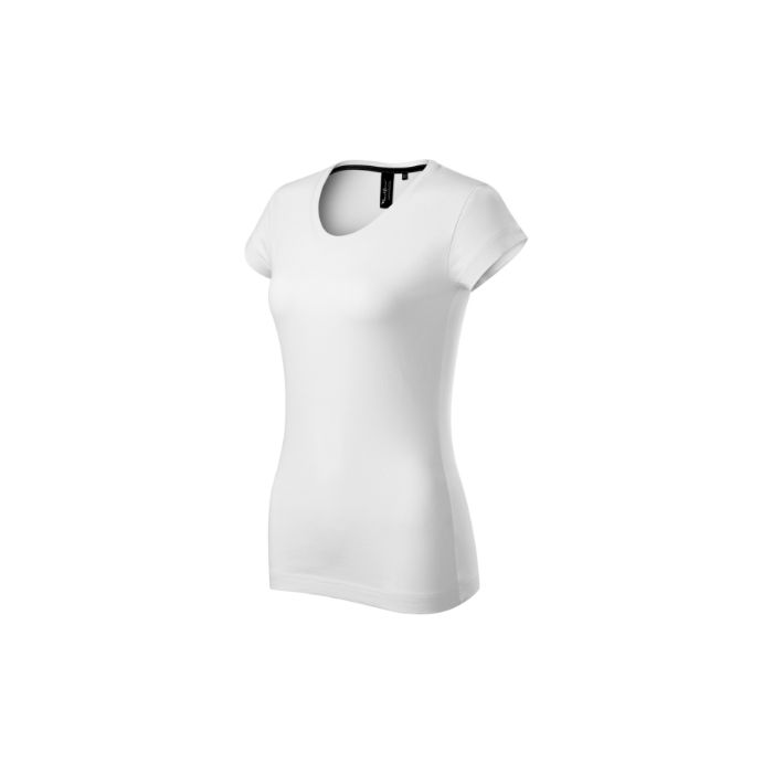 SUPIMA® - brand-ul ce reprezintă bumbacul de cea mai deosebită calitate, croială “slim fit” ce prezintă cusături laterale, guler rotund cu decolteu adânc, tivul îngust al gulerului este confecționat din material raiat 1:1, cu adaos de 5 % elastan, interiorul gulerului prezintă bandă de întărire pe spate, din satin, de culoare 01, mâneci mai scurte, la nivelul umerilor este aplicată o cusătură de întărire