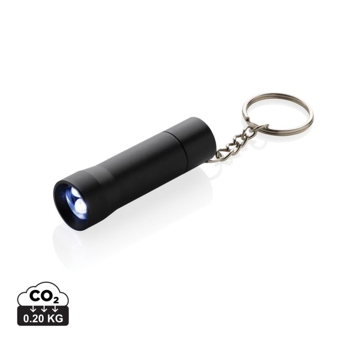 3 LED pocket size torch made with RCS recycled aluminum Total recycled content: 50% based on total item weight. RCS certification ensures a completely certified supply chain of the recycled materials. With 15 lumen that allow an operating time up to 6 hours on one set of batteries (included) With keychain. Beam distance: 3 metre. Packed in FSC® mix kraft packaging.