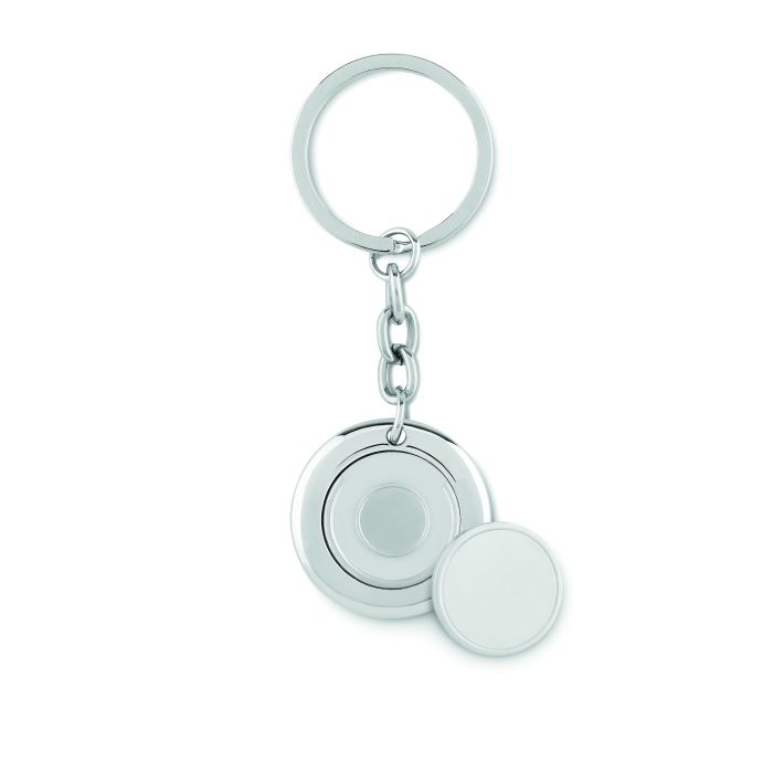 Breloc rotund cu fisă magnetică pentru căruciorul de cumpărături.
