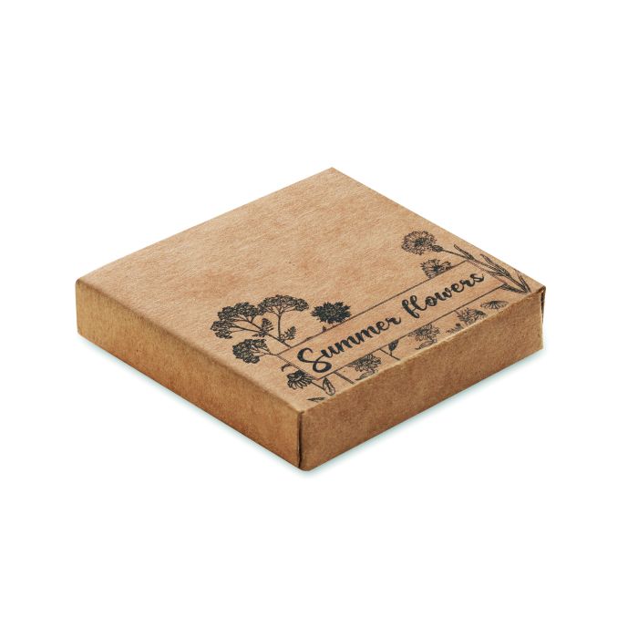 Disc de turbă presată cu amestec flori de vară prezentat în cutie de carton. Fabricat în UE.