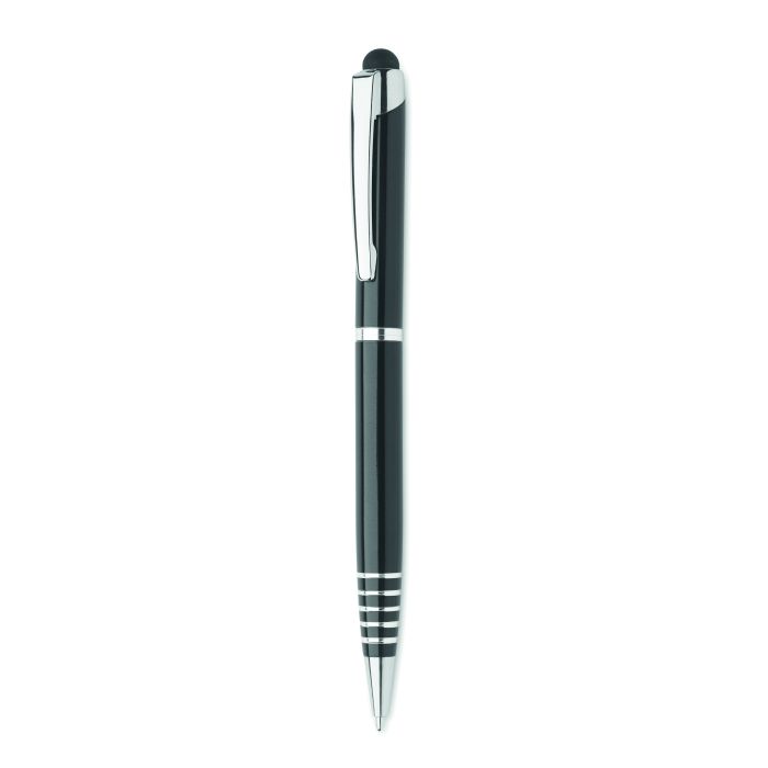 Pix cu bilă și mecanism twist din aluminiu reciclat cu stylus. Cerneală albastră.