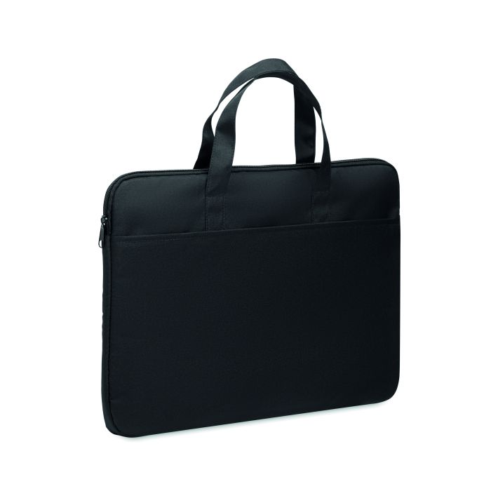 Geantă pentru laptop de 15'' din poliester RPET 300D cu mânere și curea de trecere pentru bagaje.