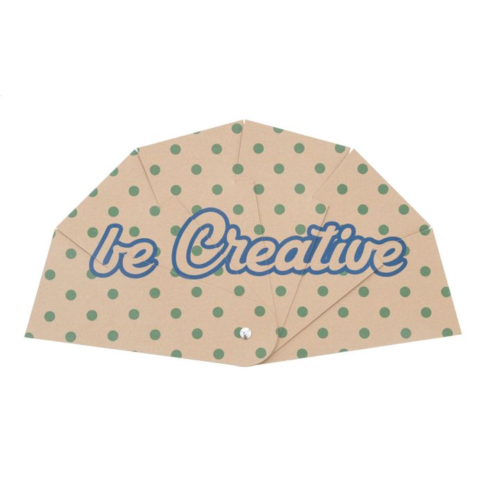 Evantai de mână, din hârtie kraft, realizat la comandă, cu grafică color. Prețul include imprimarea digitală pe ambele fețe. MOQ: 100 buc.