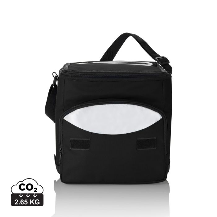 600D cooler bag with silver lined insulation inside to keep all your food and beverages cold. On the front there’s one additional pocket with printed colour detail around the zipper for storing your other belongings.