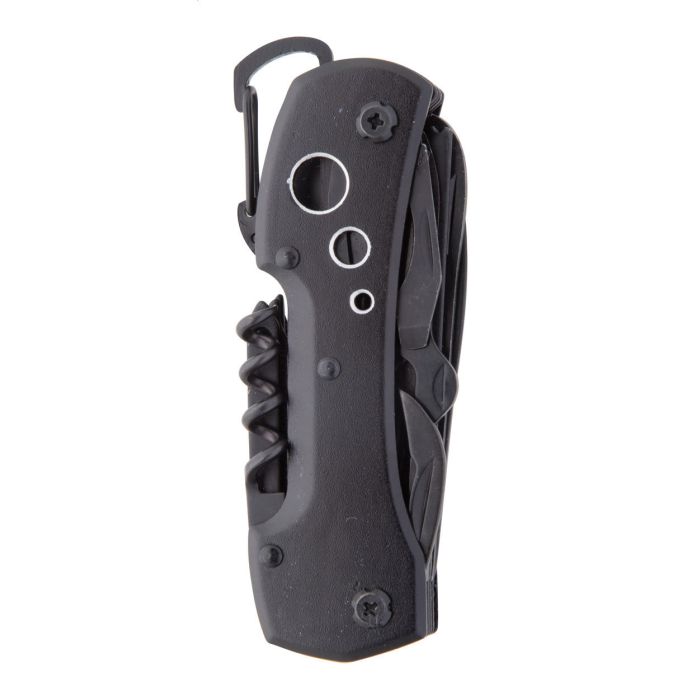 Briceag din oțel inoxidabil, complet negru, cu 13 funcții, carabină și mâner din aluminiu.