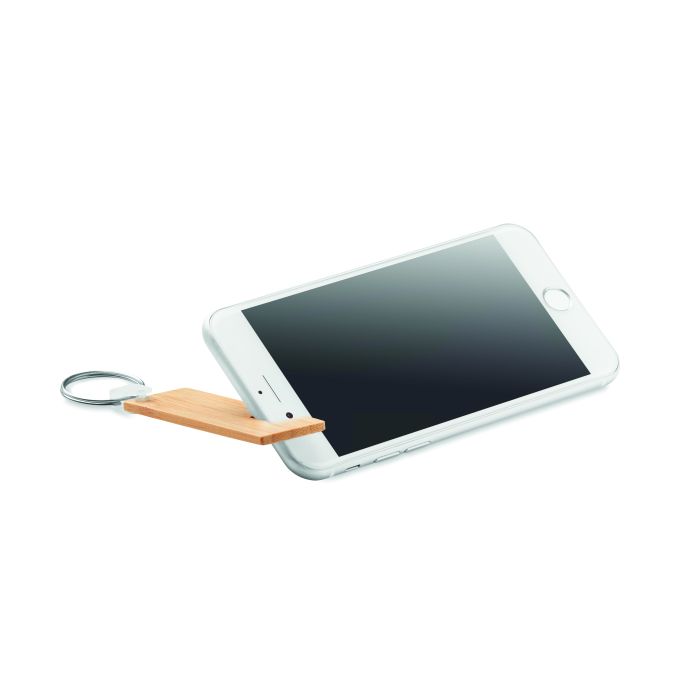 Breloc de chei din bambus cu funcționalitate de suport pentru telefon. Un breloc elegant din bambus care servește și ca suport pentru telefon. În acest fel, puteți purta mereu cu dvs. un suport de telefon compact. Bambusul este un produs natural, în consecință pot apărea diferențe de culoare, dimensiune sau desen. FSC®-certified | FSC 100%, N5.7, FSC-C213206