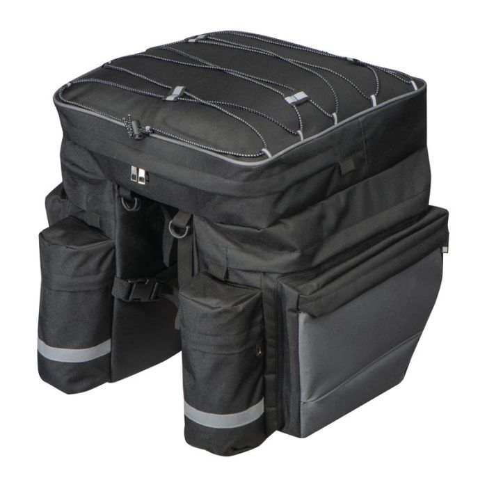 Geantă mare de înaltă calitate pentru bicicletă, care poate fi atașată de portbagaj. Cu multe funcţii, cum ar fi curele elastice și mai multe compartimente pentru depozitare.