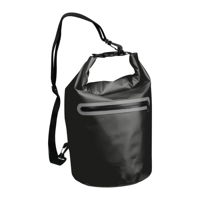 Geantă impermeabilă cu bretele de umăr și pentru talie, cu dungi reflectorizante pe partea frontală, cu o capacitate de 15 litri.