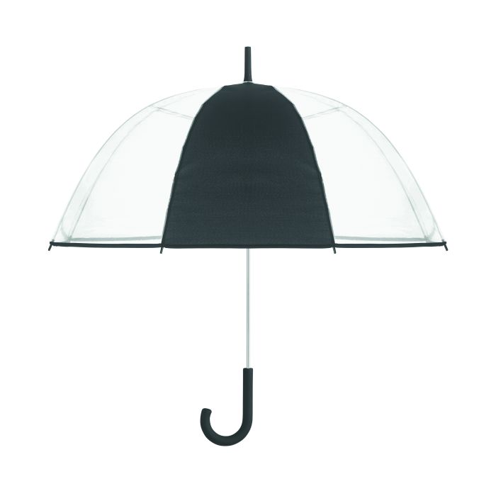 Umbrelă dreaptă de 23 inch în POE cu țeavă PG și 1 panou din poliester pentru zona de imprimare. Deschidere manuală. Spițe și cadru din fibră de sticlă. Ax cromat cu vârfuri din plastic. Mâner finisat cu cauciuc.