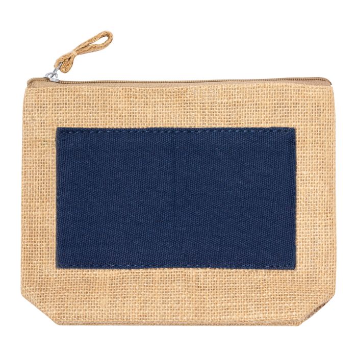 Geantă cosmetică cu fermoar din iută laminată și bumbac.