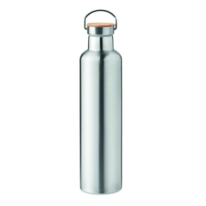Termos din oțel inoxidabil cu perete dublu, cu capac din bambus și mâner de transport. Capacitate: 1 l. Bambusul este un produs natural, în consecință pot apărea diferențe de culoare, dimensiune sau desen.