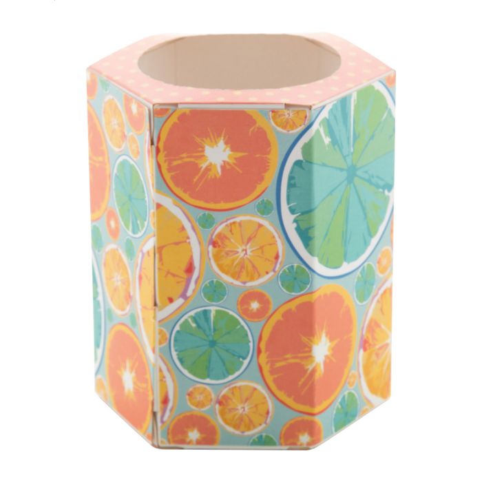 Suport hexagonal personalizat pentru pixuri, din hârtie. Prețul include imprimarea full colour. Cantitate minimă de comandă: 100 buc.