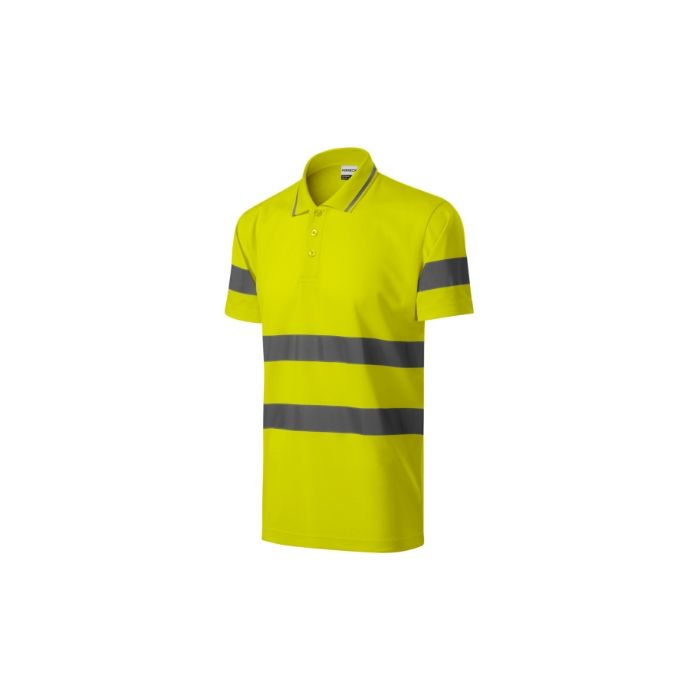 îmbrăcăminte de vizibilitate ridicată, poliester în culoare fluorescentă pe partea exterioară, bumbac pe partea interioară, benzi reflectorizante 3M, cu certificare, cusături laterale, guler din material raiat 1:1, cu dungi contrastante, fentă cu trei nasturi de culoarea materialului de bază, interiorul gulerului prezintă o bandă confecţionată din acelaşi material precum cel de bază, la nivelul umerilor sunt prezente cusături de întărire, model conform cu standardele EN ISO 20471/A1 (clasa 2) și EN ISO 13688
