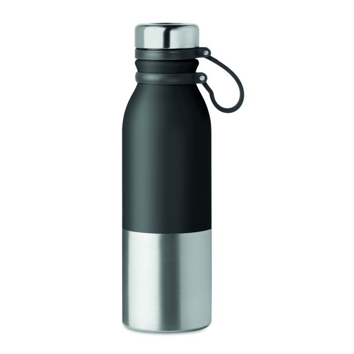 Sticlă din inox cu perete dublu, cu prindere din silicon, pentru o purtare ușoară. Fără scurgere. Capacitate: 600 ml. Fără scurgere.