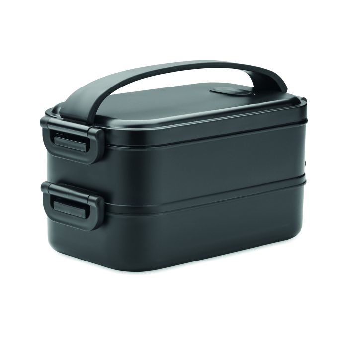 Cutie de prânz din PP cu două niveluri, separator detașabil cu catarame laterale și capac ermetic. Capacitate: 800 ml (2x).