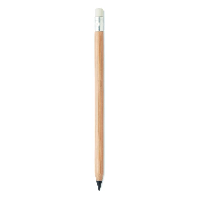 Pix fără cerneală din bambus de lungă durată, cu corp din bambus și radieră deasupra, capac din hârtie. Stiloul scrie cu vârful de grafit. Acest lucru face ca acest stilou să fie o alternativă durabilă excelentă la stiloul tradițional. Bambusul este un produs natural, pot exista mici variații de culoare și dimensiune pentru fiecare articol, care pot afecta rezultatul final al decorului.