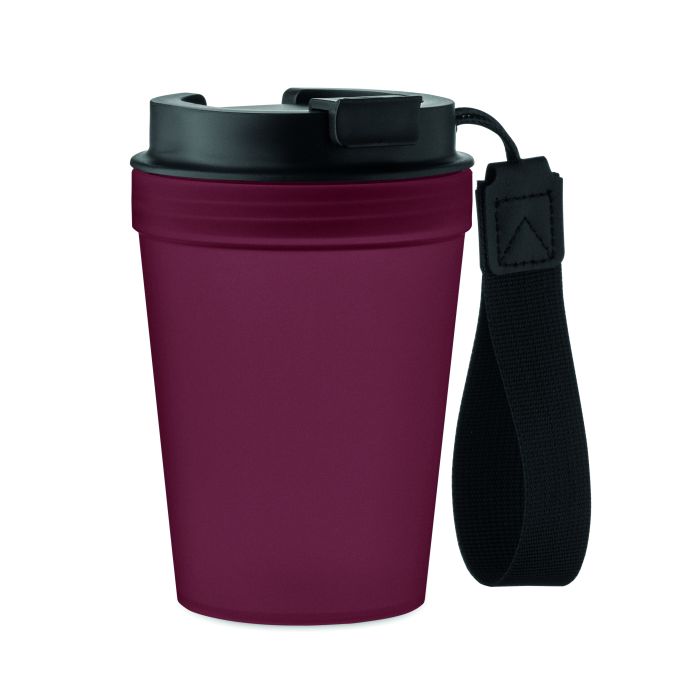 Pahar cu un singur perete din PP, curea din poliester RPET. Fără scurgeri. Capacitate: 300 ml. Deoarece acesta este un pahar cu un singur perete, se poate produce în continuare transfer de căldură.
