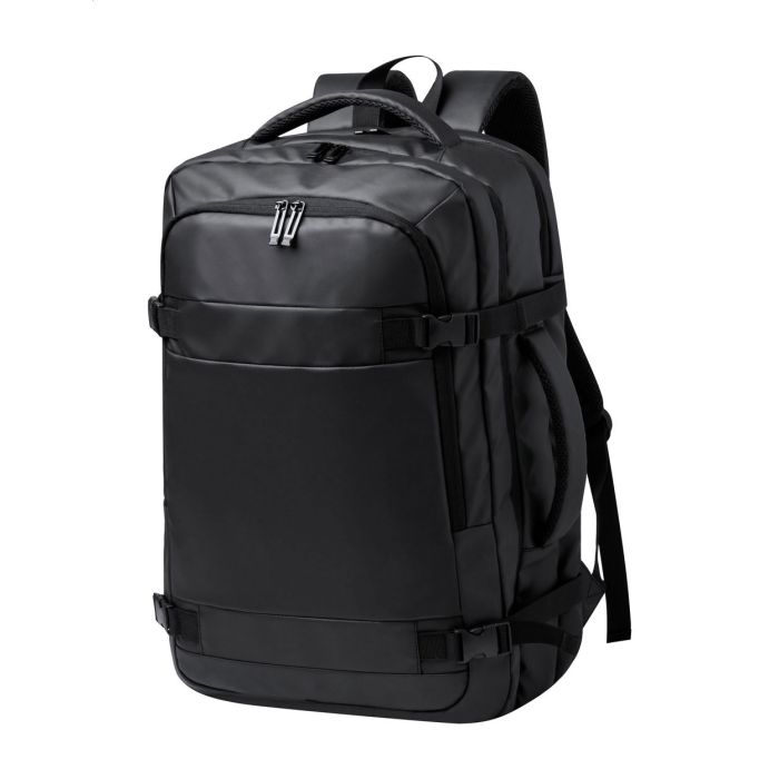 Rucsac cu două funcții și geantă pentru documente din piele PU, cu compartimente cu fermoar, laptop căptușit (17") și compartiment din plasă, curea pentru cărucior, spate și bretele căptușite.