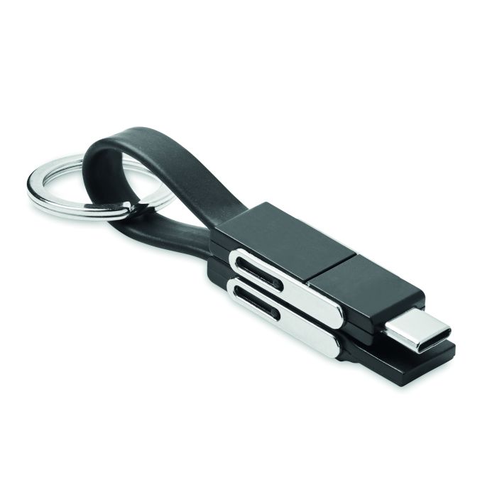 Breloc de chei cu cablu de încărcare 4 în 1. Intrare/ieșire: Type-C x2, Type-A, Micro USB.