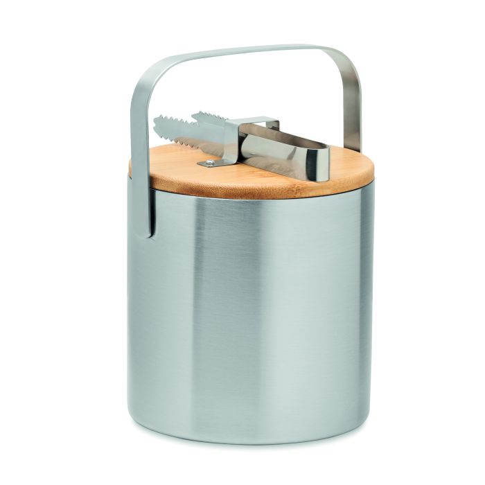 Frapiera din oțel inoxidabil izolată cu perete dublu, capac din bambus și clește de gheață. Capacitate: 1200 ml. Bambusul este un produs natural, în consecință pot apărea diferențe de culoare, dimensiune sau desen.