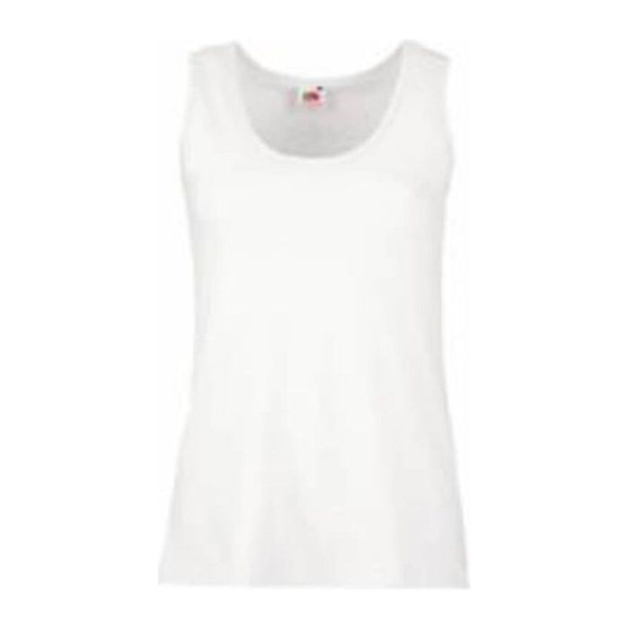 Ladies T-shirt without sleeves, shaped side seams for a feminine fit; self-fabric binding to neck and armholes.