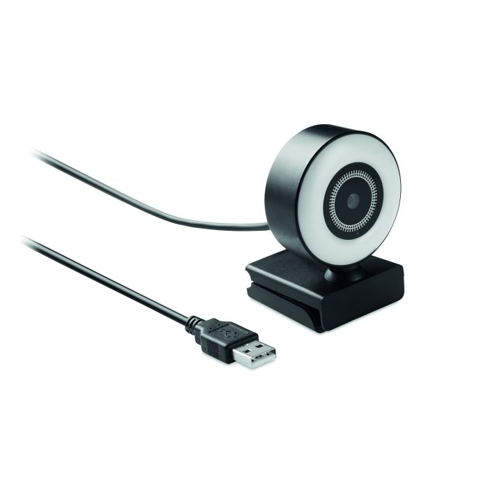 Cameră web 1080P HD streamer în ABS cu microfon încorporat și inel luminos reglabil.