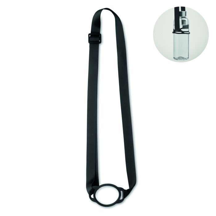 Lanyard cu suport de pahar, pentru evenimente, din silicon (diametru 6 cm) și cataramă reglabilă din PP. Lanyard de 20 mm lățime.