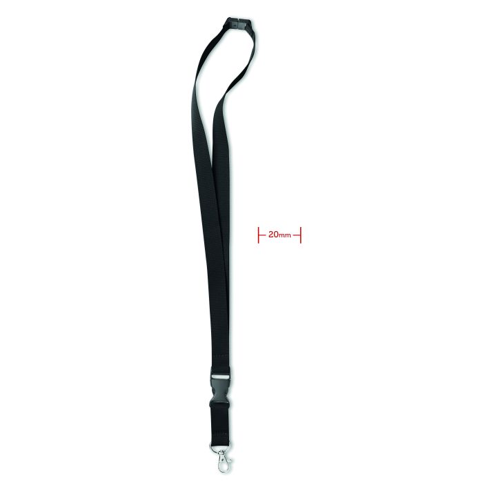 Lanyard cu carabină metalică şi cataramă detaşabilă și sistem de siguranţă. 20 mm lătime.