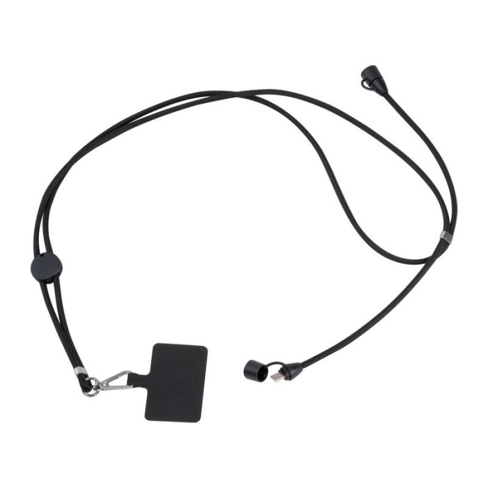 Lanyard cu cablu de încărcare tip C - Negru - 85 x 1 cm