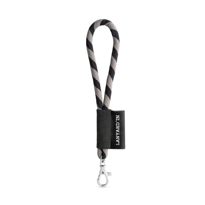 Lanyarad tubular scurt personalizabil din poliamidă cu 17 de culori standard disponibile pentru personalizare. Include următoarele accesorii și extra: elastic negru, etichetă de sublimare de 43 x 15 mm și o mica carabină de 9 mm. ø7 x 150 mm
