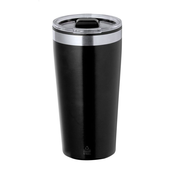 Cană termoizolată din oțel inoxidabil reciclat, cu perete dublu, cu capac de băut din plastic PP, 600 ml.