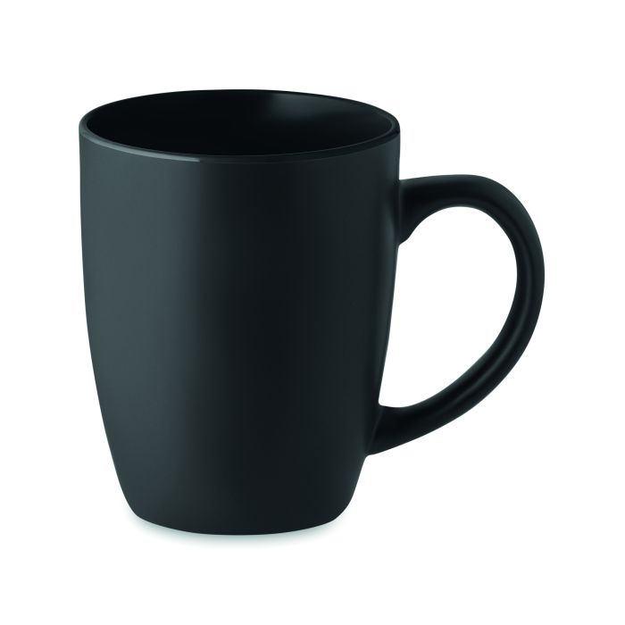 Cană din ceramică neagră mată cu interior colorat lucios. Capacitate: 290 ml. Cu un strat special pentru gravură laser