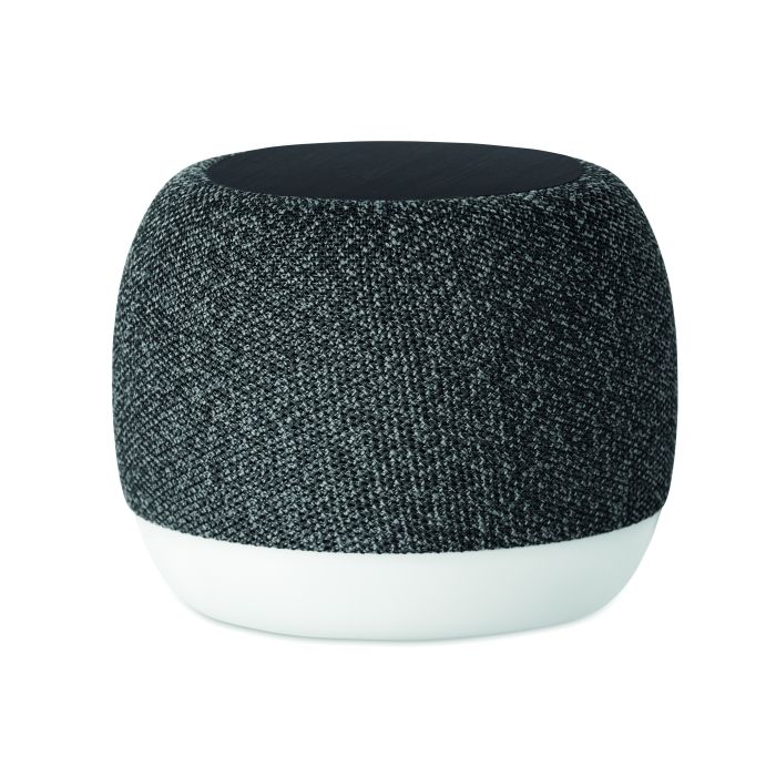 Boxă wireless 5.0 din ABS și țesătură RPET și detaliu din bambus pe partea superioară. 1 Baterie reîncărcabilă Li-ION de 1200 mAh inclusă. Include un port pentru card SD și un cablu AUX/ USB. Date de ieșire: 5W, 3 Ohm și 5V. Timp de redare aprox. 3h.
