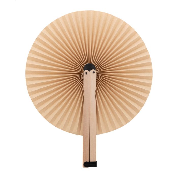 Evantai de mână din hârtie kraft, cu mâner din lemn.