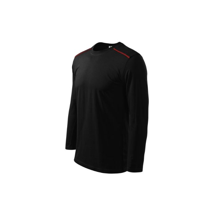 cusături laterale, cusătură aplicată la nivelul umerilor cu bandă în culoare contrastantă, tivul gulerului este confecționat din material raiat 1:1, cu adaos de 5 % elastan, este aplicată o bandă de întărire de la umăr la umăr, mâneci lungi